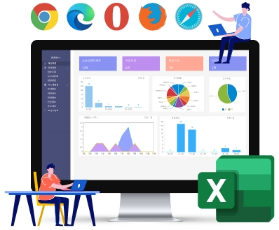 HTML, JavaScript, CSS를 몰라도 Excel에서 작업하는 것과 동일하게, 셀 병합, 셀 스타일과 다양한 셀 타입(텍스트 상자, 버튼, 날짜, 체크박스 등)을 사용하여 쉽고 빠르게 웹 화면과 다양한 웹 입력 양식을 개발할 수 있습니다.