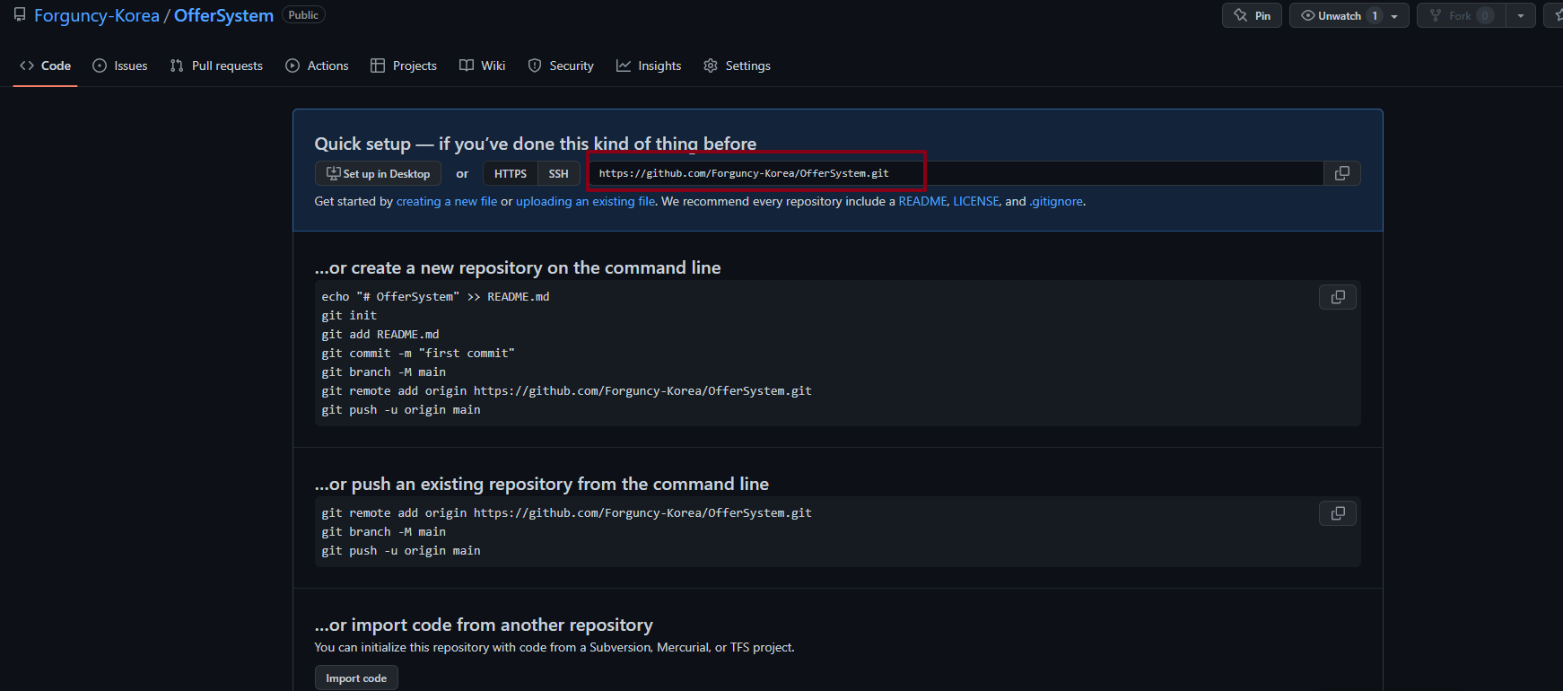 ![](https://help.grapecity.com.cn/download/thumbnails/72363999/%E6%AD%A5%E9%AA%A43.png?version=1\&modificationDate=1648092709000\&api=v2) 생성이 완료되면 저장소 주소를 가져옵니다.