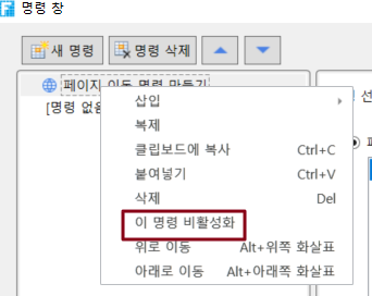 명령을 마우스 오른쪽 버튼 클릭하고 [이 명령 비활성화] 선택합니다.