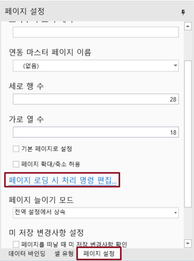 페이지를 열고 속성 설정 영역에서 페이지 설정 탭을 선택하고 페이지 로드 시 명령 편집을 클릭하여 명령을 설정합니다.