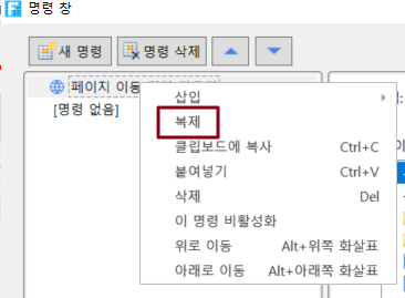명령을 마우스 오른쪽 버튼을 클릭하고 [복제]를 선택합니다. 또는 Ctrl 키를 누른 채 명령을 드래그하여 명령을 해당 위치로 복사합니다.