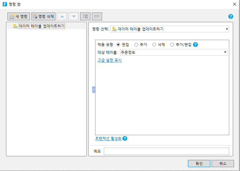 편집: 대상 테이블에서 지정된 레코드의 데이터를 업데이트합니다.