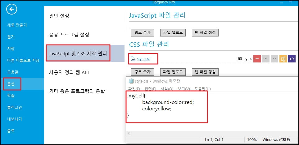 그림과 같이 css 코드와 함께 스타일 .css 파일을 업로드합니다. 여기서 myCell은 클래스 이름입니다.