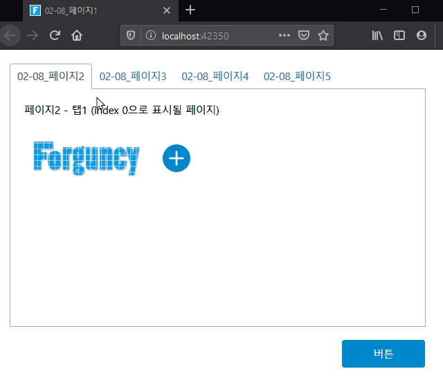 4. 해당 프로젝트를 실행하고 탭을 이동하면서 버튼을 클릭하면 화면에 활성화되어 있는 탭의 Tab Index 번호가 표시됩니다.