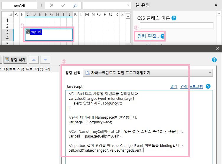 alert("안녕하세요. Forguncy!");