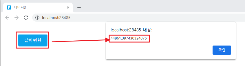페이지를 실행하고 페이지에서 날짜 변환 버튼을 클릭하면 변환된 OADate를 표시하는 경고 상자가 나타납니다.