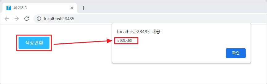 페이지를 실행하고 페이지에서 색상 변환 버튼을 클릭하면 변환된 CSS 색상( 색상의 16진수 값)을 표시하는 경고 상자가 나타납니다.