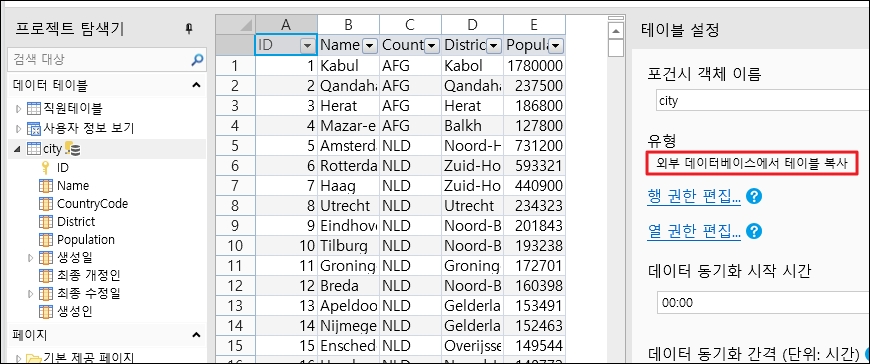 외부 테이블의 데이터를 복제본 테이블에 강제로 동기화합니다.