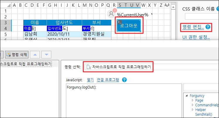 페이지에서 셀 범위를 선택하고 셀 유형을 버튼 설정하고 명령을 [JavaScript 명령]으로 편집하고 JavaScript 코드를 입력합니다.