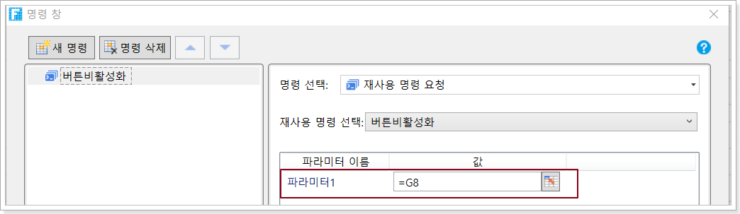 새로 만들기를 클릭하여 재사용 명령에 대한 매개변수를 만듭니다.