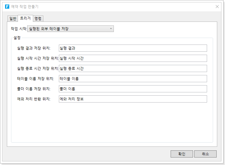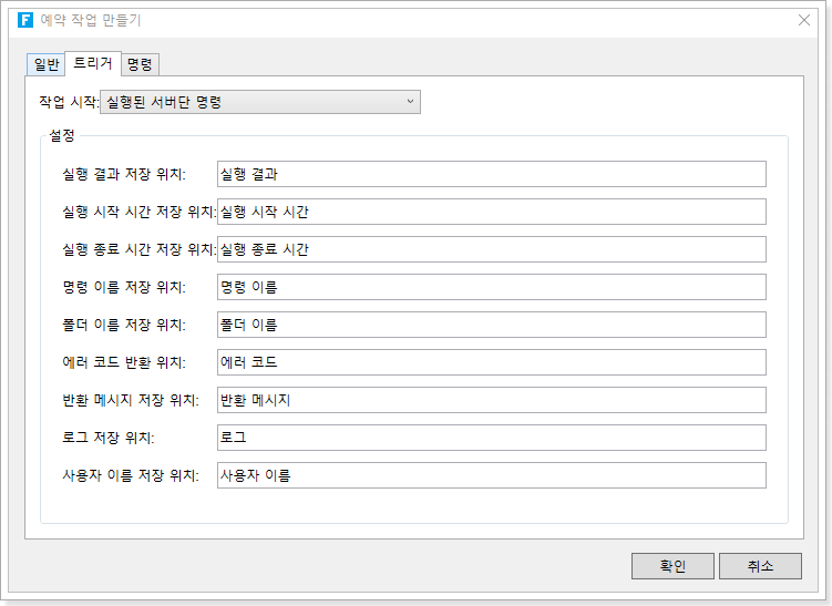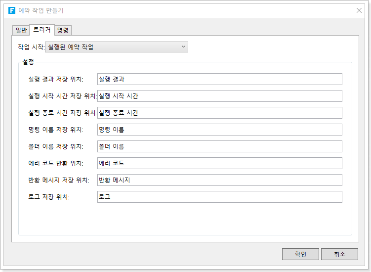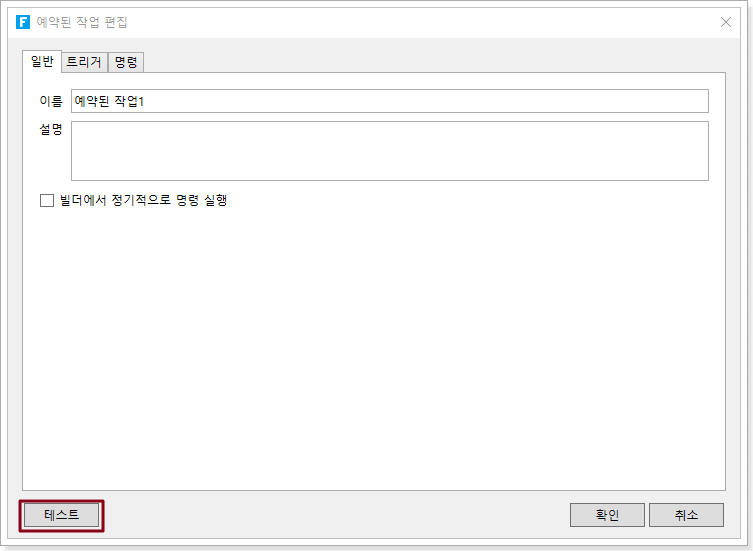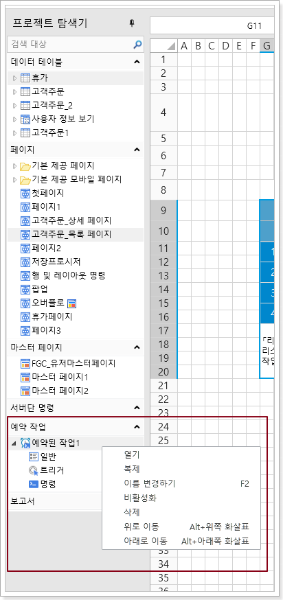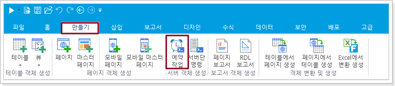 또는 리본 메뉴에서 [만들기]>[예약작업]에서 대화상자를 뜨게 할 수 있습니다.