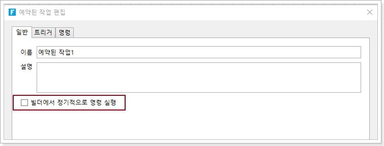 이 옵션을 선택하면 빌더에서 예약된 작업에 대한 명령이 예약되고 기본적으로 선택되지 않습니다.