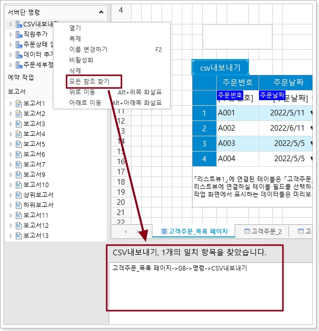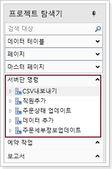 서버단 명령을 만든 후 개체 관리자에서 명령을 편집할 수 있습니다.