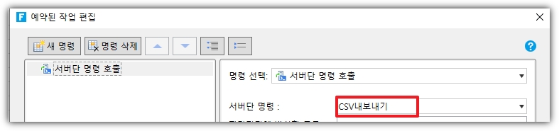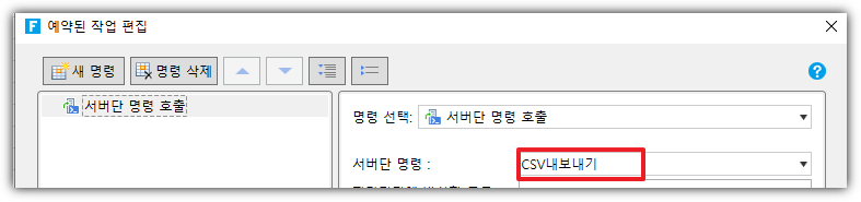 서버단 명령에서 "서버 명령 호출"으로 명령을 선택하고 서버단 명령 목록에서 비공개 서버단 명령을 선택할 수 있습니다.