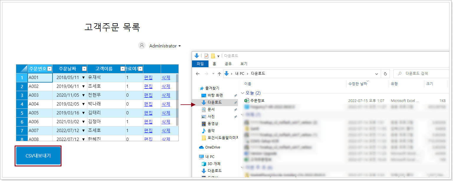 페이지를 실행합니다.페이지에서 [CSV 내보내기] 버튼을 클릭하면 설정된 지정된 경로 아래에 내보낸 CSV 파일이 표시됩니다.