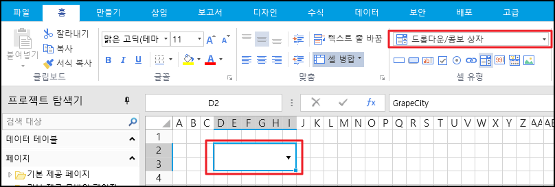 ## 드롭다운/콤보상자 설정&#x20;