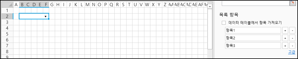 | 항목 유효성 검사                | 이 옵션을 선택하면 드롭다운 목록의 항목만 입력할 수 있습니다.                                                                                                                                                                                                                                                                                                                                                                                                                    |