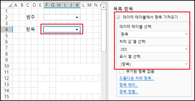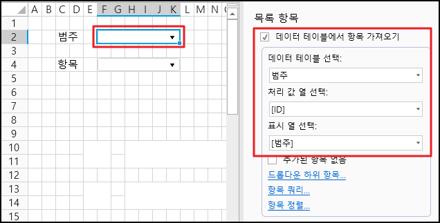 # 콤보 상자 연결 설정