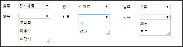 두 개의 콤보 상자를 사용하여 연결 설정을 수행하여 선택 범위를 좁힐 수 있습니다.
