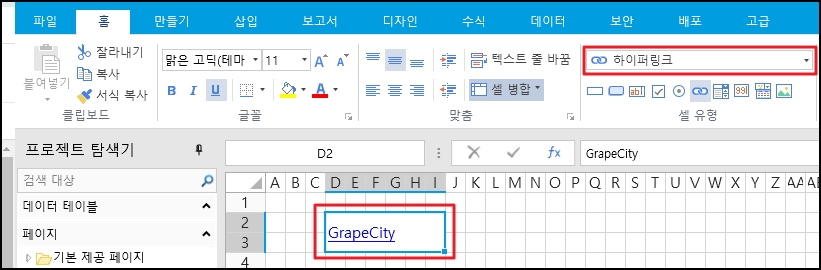 셀을 하이퍼링크 유형으로 설정합니다.
