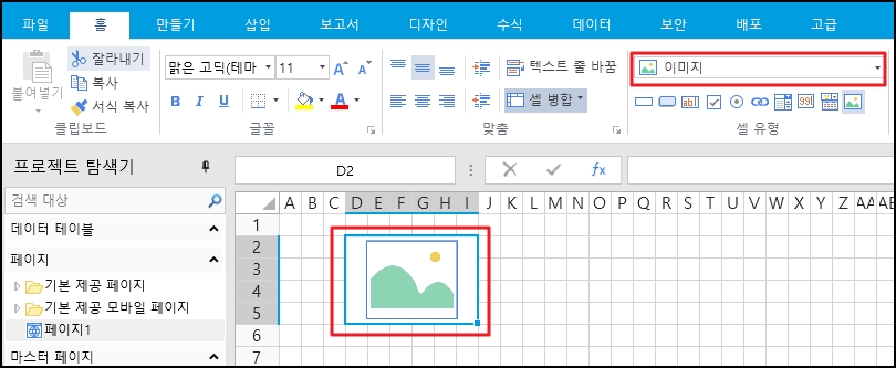 이미지 상자를 선택하고 속성 설정 영역에서 셀 설정 탭을 선택합니다.