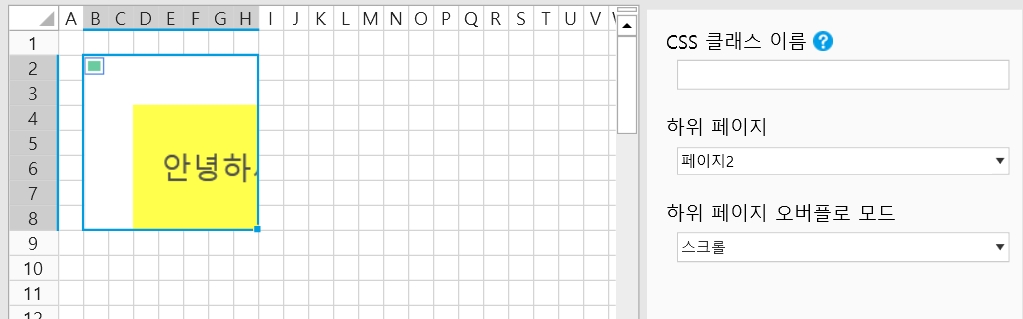 • 잘라내기: 하위 페이지에서 페이지 컨테이너를 초과하는 부분은 클리핑되어 표시되지 않습니다.