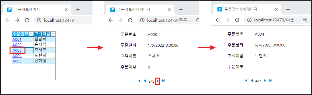 예를 들어 주문 목록 페이지에서 테이블에서 주문 번호를 클릭하여 주문 세부 정보 페이지로 이동합니다.