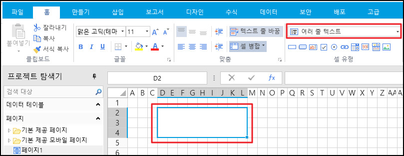 실행 후 여러 줄의 텍스트를 입력할 수 있는 여러 줄 텍스트 상자 유형으로 셀을 설정합니다. 여러 줄의 텍스트는 다음 그림과 같습니다.