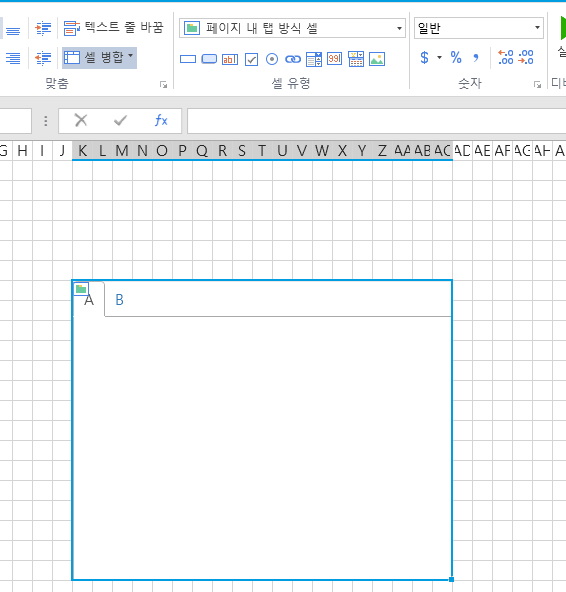 페이지 내 탭 방식 셀을 선택하고 속성 설정 영역에서 "셀 유형" 탭 페이지를 선택합니다.