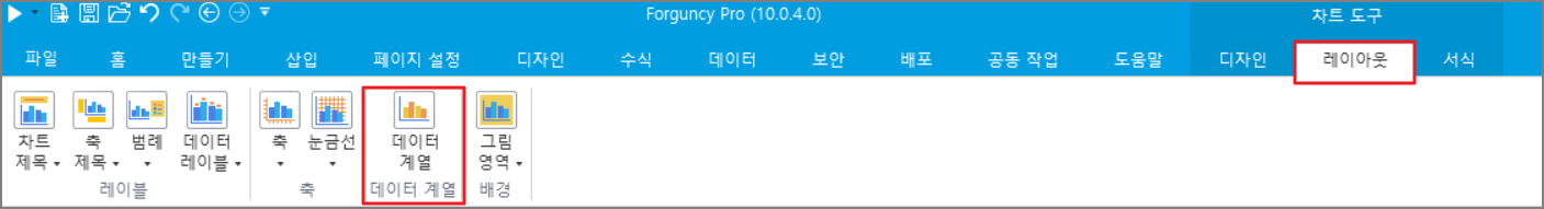 3. 세로 막대형 차트를 선택하고 리본 메뉴바에서 "차트 도구-레이아웃->데이터 계열"을 선택합니다.