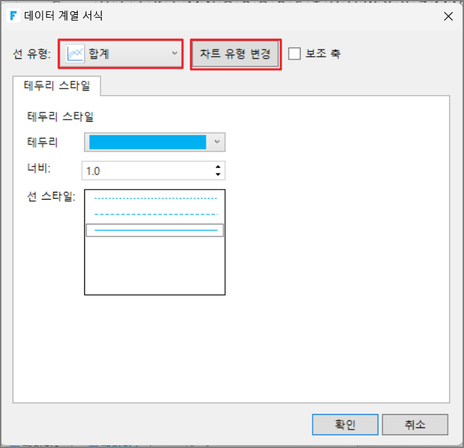 꺾은선형 차트의 테두리 스타일과 데이터 표시 옵션을 설정할 수도 있습니다.