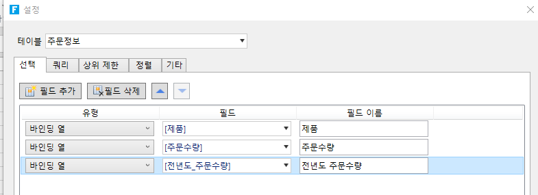 바인딩열: 데이터 테이블의 필드를 바인딩합니다.