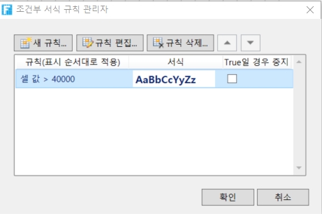 조건부 서식을 선택하고 [규칙 관리]를 클릭하면 팝업 조건 형식 규칙 관리자에서 규칙을 새로 만들기, 편집 및 지울 수 있습니다.