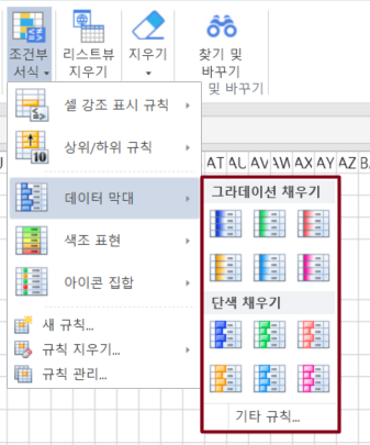 데이터 막대는 많은 양의 데이터에서 더 높은 값과 낮은 값을 관찰할 때 특히 유용합니다.