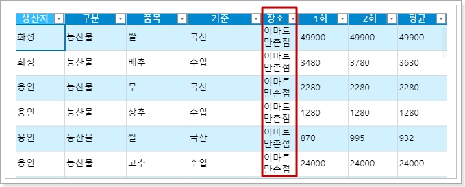 행 높이를 행에서 가장 높은 값과 일치하도록 조정합니다.
