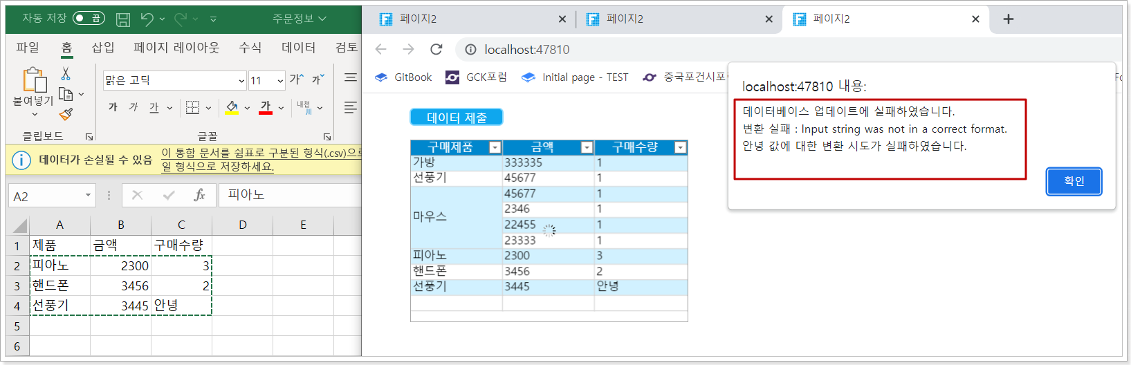 리스트뷰 반영 : Excel, CSV를 가져오거나 테이블에 데이터를 붙여 넣는 등의 작업은 테이블 데이터 유효성 검사를 즉시 트리거하지 않으며 테이블 데이터를 제출할 때만 트리거됩니다.
