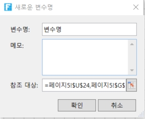 [새로운 변수] 창에서 변수명, 메모를 입력하고 버튼을 누릅니다.