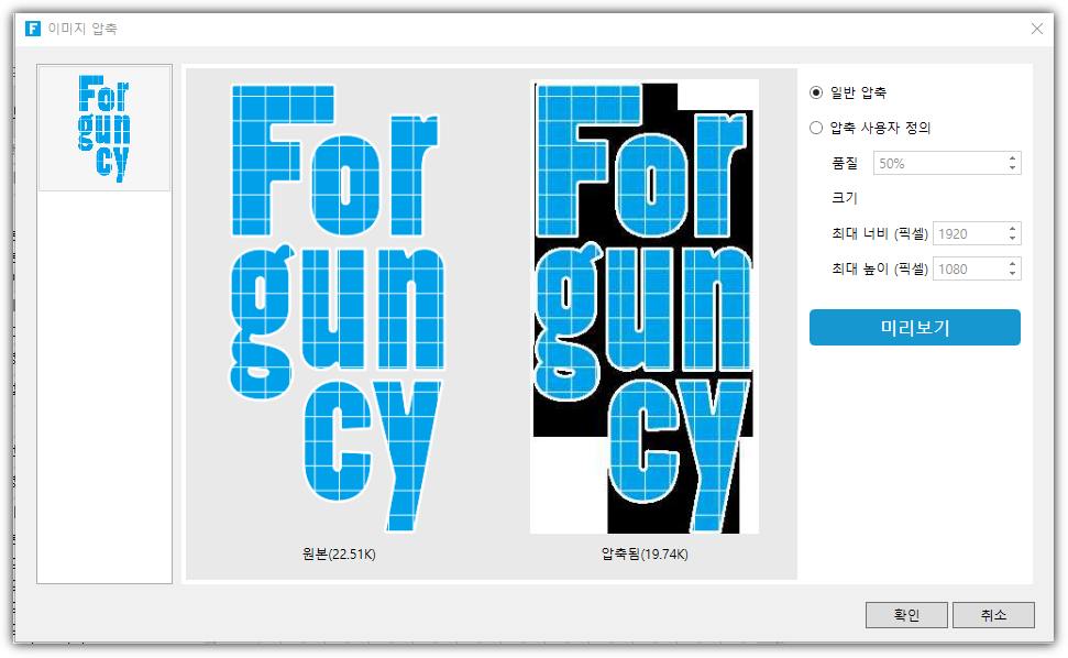 * 일반 압축:기본 설정으로 이미지를 압축합니다.