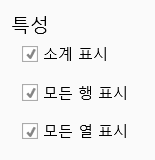 피벗 테이블을 빌드한 후 피벗 테이블 속성을 설정할 수도 있습니다. 피벗 테이블 속성에는 소계 표시, 모든 행 표시, 모든 열 표가 포함됩니다. 기본적으로 이 세 가지를 선택합니다.