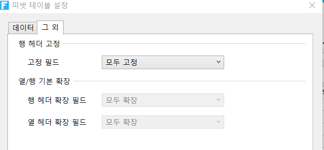 피벗 설정 대화 상자에서 행 헤더 고정, 기본 확장 및 내보내기 설정을 수행할 수 있습니다.