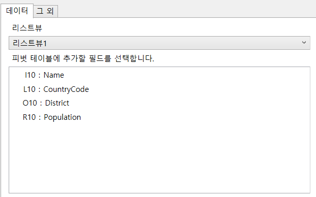 필드 설정입니다. 필드 오른쪽에 있는 드롭다운 메뉴를 클릭하고 필드 설정을 선택합니다.