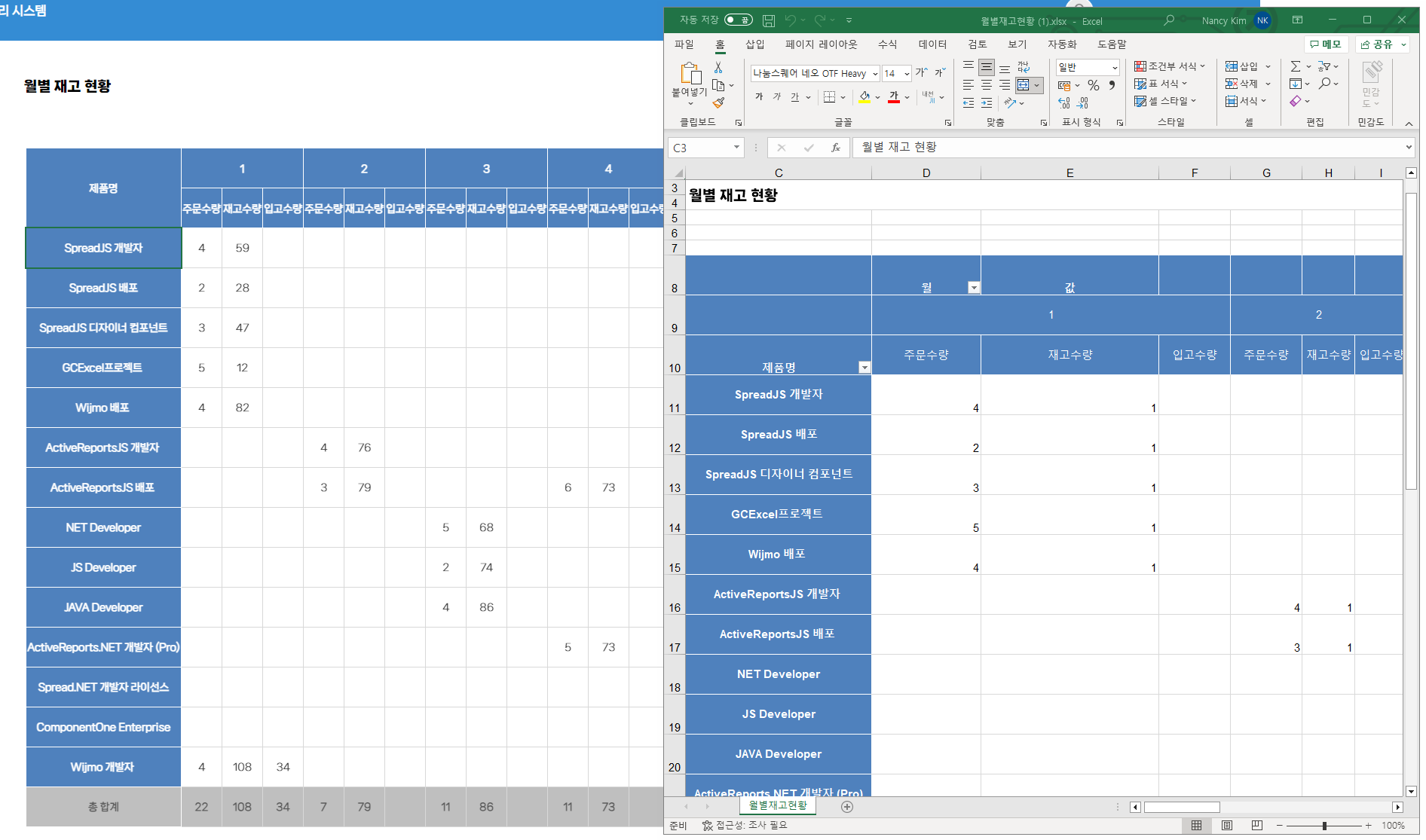 피벗테이블을 만든 후 Excel로 내보낼 수 있으며 내보내기 후 Excel에서도 피벗 테이블로 적용됩니다.