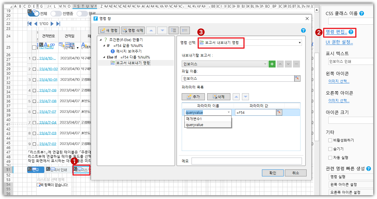 예를 들어 페이지에서 "보고서 내보내기" 버튼을 설정하고 버튼의 명령을 편집한 다음 해당 명령을 보고서 내보내기 명령으로 선택합니다.