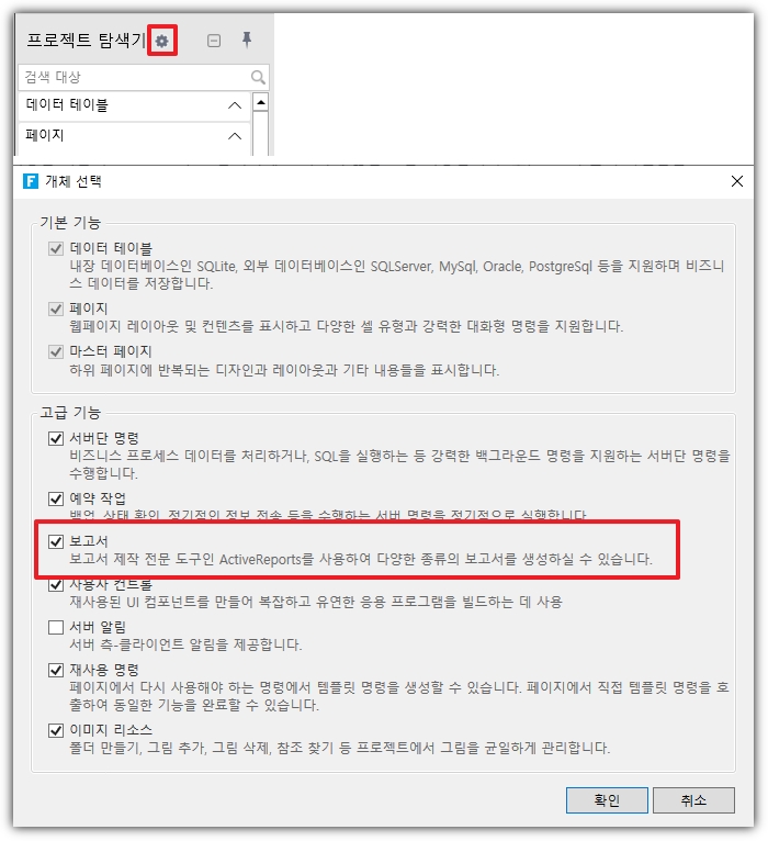 보고서 기능은 기본적으로 프로젝트 탐색기에 표시되지 않는 고급 기능입니다 . 보고서 앞의 확인란을 선택하고 "확인"을 클릭하여 개체 관리자에 보고서 개체를 표시합니다.