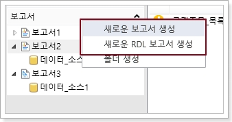 보고서를 만듭니다. 개체 관리자의 보고서 탭에서 마우스 오른쪽 버튼을 클릭하거나 새로운보고서생성 또는 RDL 보고서 생성을 선택합니다.