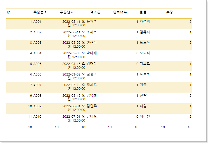 데이터 바인딩이 완료되면 보고서를 미리 볼 때 데이터 집합의 원시 데이터에 따라 자동으로 확장됩니다.