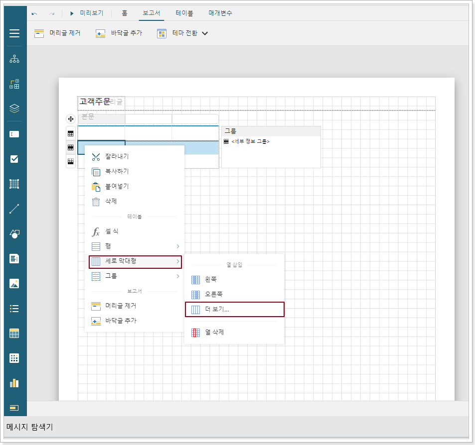 테이블 구성 요소를 사용하여 보고서를 디자인하기