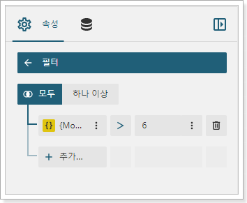 다음은 다음 그림과 같이 {Month(주문 날짜)}로 설정되어 있으며(그룹화 조건과 동일) 필터링 규칙은 6보다 큽니다.