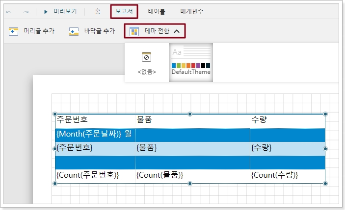 보고서의 제목을 전환하여 전체 보고서의 모양을 조정할 수도 있습니다.