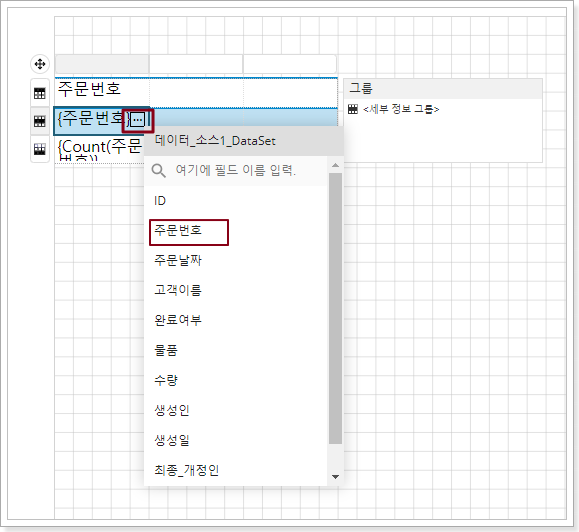 방법 1: 테이블 셀을 선택하고 셀 내의 오른쪽을 클릭하여 바인딩할 데이터 집합의 필드를 선택합니다.![]()